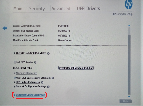 Figure 4. Update BIOS Using Local Media