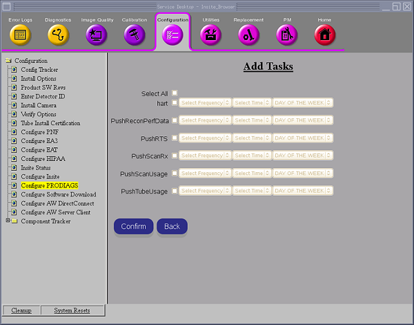 5. Click Configure PRODIAGS link, all the prodiags tasks display.