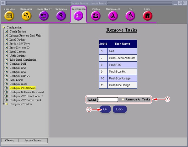 5. Click Configure PRODIAGS to verify removal of the task(s).