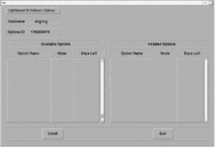 Select INSTALL OPTIONS. A blank Software Options screen appears: