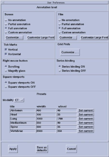 With Application Software up, record the User Prefs Screen and Film Large Font Annotation Groups selections. Refer to Initial load of this software - Retro Recon / Customize Large Font to understand the information that may need to be gathered.