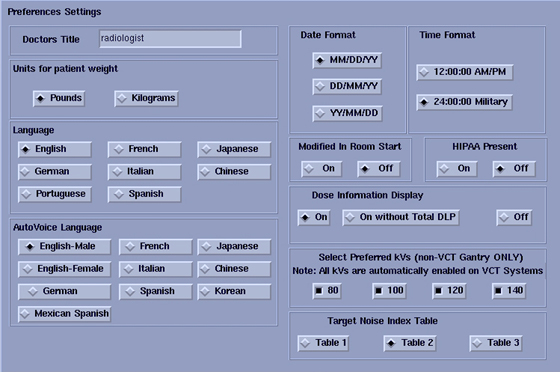 Figure 12. Preferences Settings Screen (SP2)