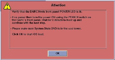 Verify all software media has been removed from the DVD tray in the DARC Node.