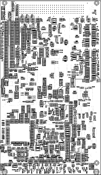 Figure 5. DAS Control Board Layout - Reverse side, showing LEDs (at bottom)