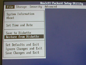 At the File menu, use the down-arrow key to highlight Restore from Diskette. (See Figure 6.)