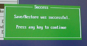 When the restore is completed, a pop-up will be displayed indicating success (Figure 7). Press any key to continue.