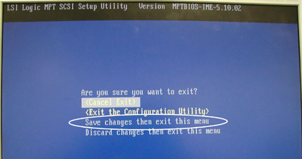 Press Esc to exit the LSI Logic MPT SCSI Setup Utility screen.