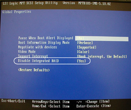 Select Disable Integrated Raid (Figure 9), and press Enter to toggle to Yes.