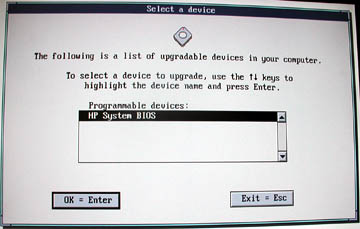 At the Select a device screen (Figure 2), verify that HP System BIOS is selected and press Enter.
