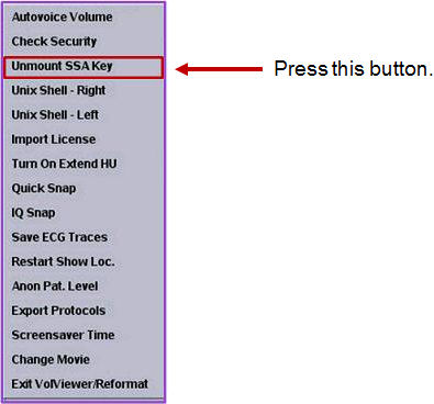 Figure 1. Unmount SSA key menu in Tool Chest