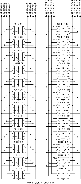 There are three (3) sets of six (6) FET control lines driven by the DCB. These FET control lines form a binary value that gets decoded in the Detector and finally controls Detector Diode selection. The three (3) sets of FET Control are described in Table 1.