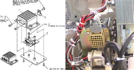 Each module uses two flex connections to the Data Acquisition System (DAS). The flex connectors cannot be removed from the module. The flex end is connected to the DAS via the DAS Detector Interface (DDIF). Both the flex lead and the DAS backplane are outfitted with female pin connectors. There is a male to male pin interface called the “Interposer” that completes the connection. Each flex carries 128 signal lines, 6 FET control lines, 1 analog ground and 1 signal ground.