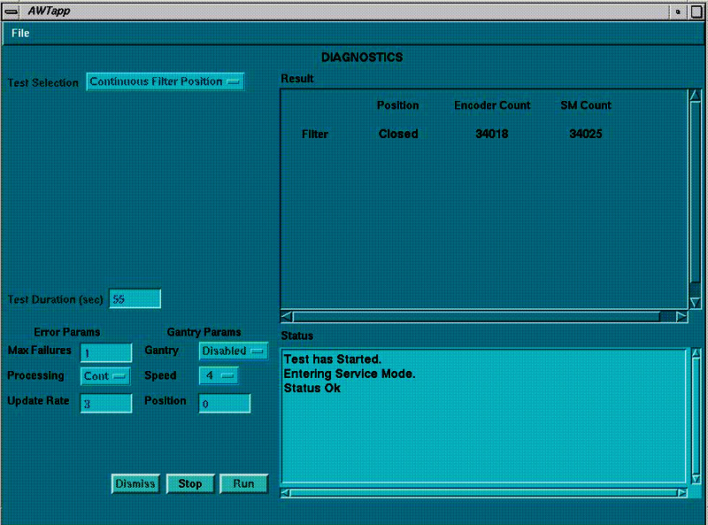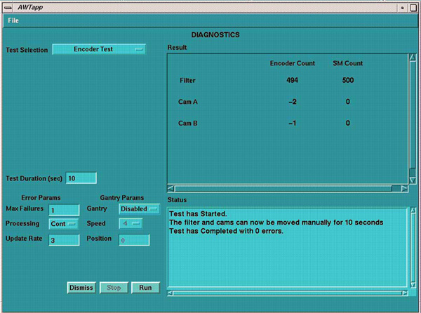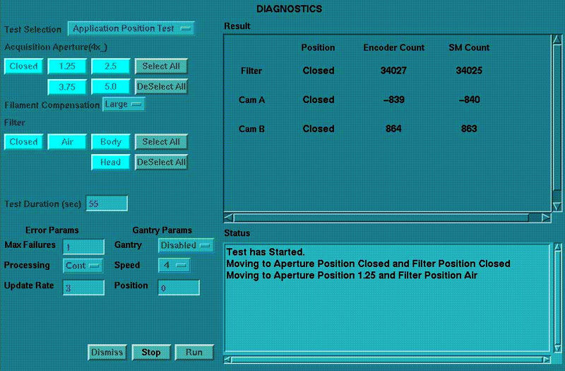 Figure 3. Collimator Continuous Filter Position Test GUI