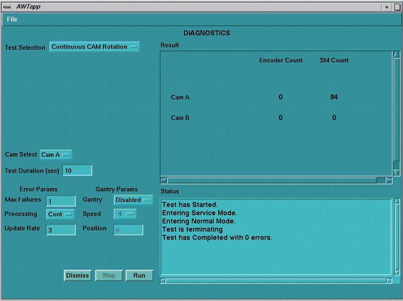The Collimator Aperture Function Test tool is used for gathering and viewing Collimator Aperture test data. It is used to recreate faulted or normal operating data when the real time data is not available, or not of use.