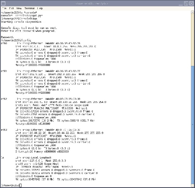 The ifconfig command as run on the Z840 Host Computer from ctuser will verify if there is any type of active connection – but not necessarily the correct active connection. Active connections can be verified using the ping process. Look for running. Remember that running is a moment in time and does not mean the connection is still active for the next moment in time.