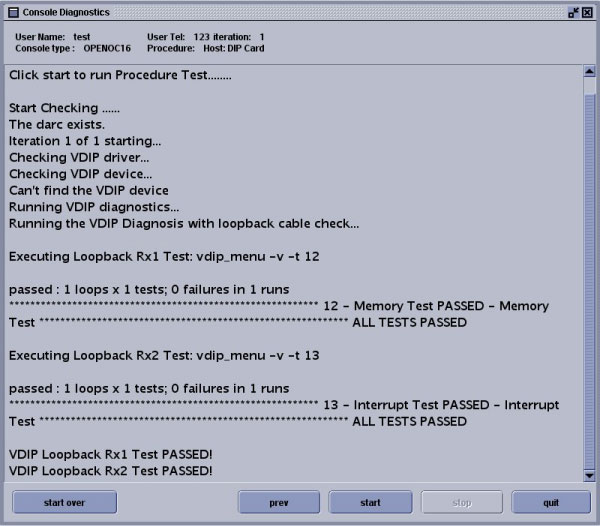 Test including DIP will allow selection of the subsequent DIP Test script is performed with or without loopback capability. If loopback capability is selected (Yes, run the loopback test ) the DIP Board diagnostic will test the RX/TX ports.
