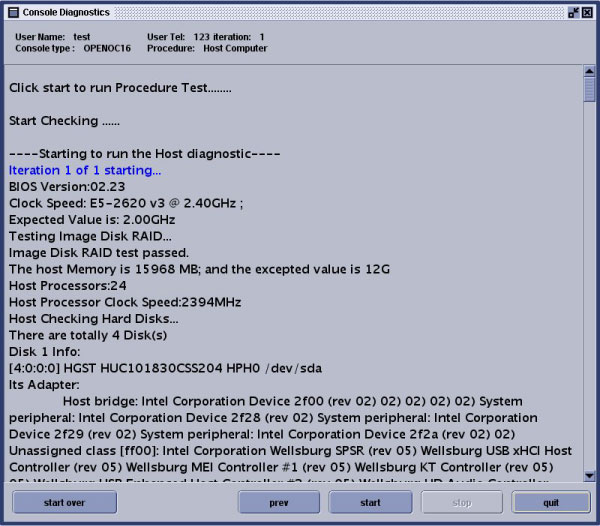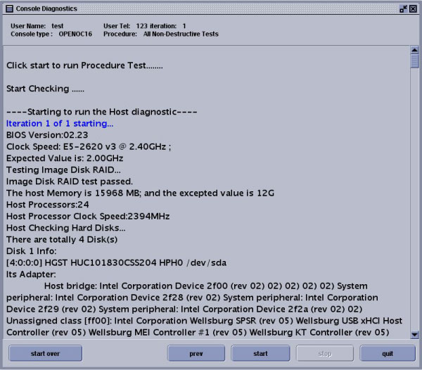 The Start Screen allows the user the choice of starting the Auto-Console Diagnostic Tests at any time.