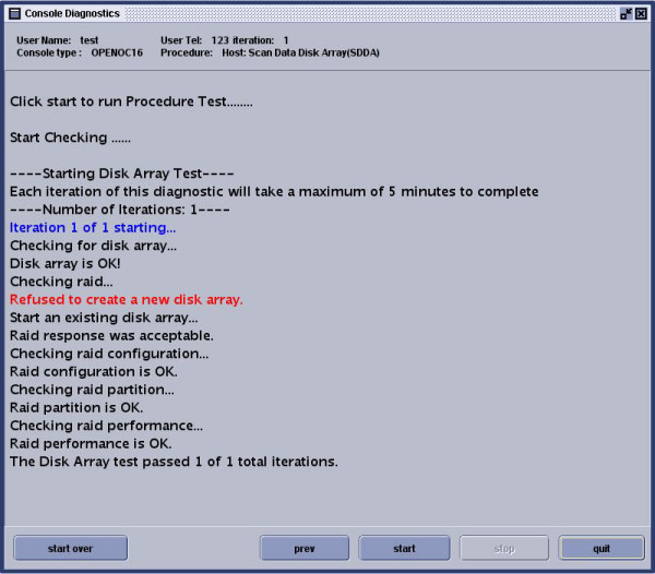 If a failure occurs during the testing and the Operator Console has not been rebooted prior to performing the diagnostic test selections, then reboot and retest the Auto-Console Diagnostics.