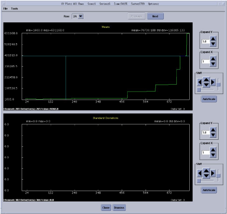 Data pattern test results for the ADB, DIFB, and DCB boards can be viewed using Scan Analysis. Note the Exam and series for the desired test to view in the result screen of the Scan Data Path GUI. The following example screens show the data patterns to be expected from each test. The data patterns shown are the View Vs Channels (VVC) plot of one channel using all default settings within Scan Analysis. All Channels will look the same.