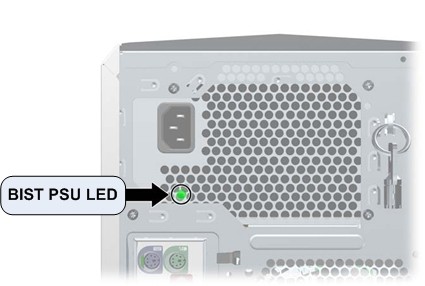 The xw8400 has a special LED mounted just inside the PSU rear ventilation grill. When the Built In Self Test (BIST) LED is green, the PSU is operational. (See Illustration 1.)