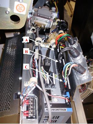 - Connect axial drive power cable from terminal strip into the X4 port of the controller. Refer to Figure 7.