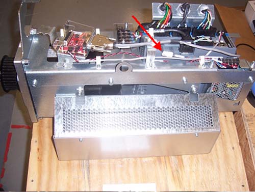 3. Remove the gantry left side, top and front covers. Connect the cover E-stop circuit to the terminators on the gantry.