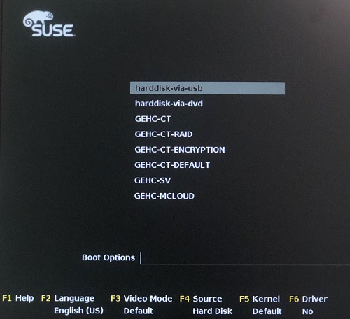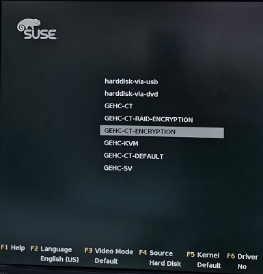 - As the Host Computer restarts, the boot process GUI appears. Select GEHC - CT-ENCRYPTION.