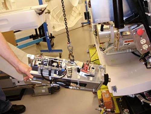 warning- Guide the motor assembly out of the gantry and set aside. Leave the hoist assembly set up as it will be required for the installation of the new drive.