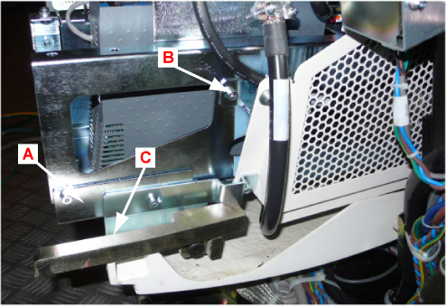- Disconnect all connections to the right options interface panel and remove the two bolts attaching the panel to the gantry, and remove the bottom gantry cover.