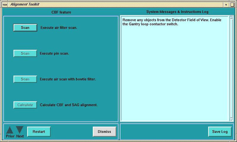 CBF/SAG Alignment ensures the focal spot is accurate, the bowtie filter is centered and center of rotation is in a straight line.