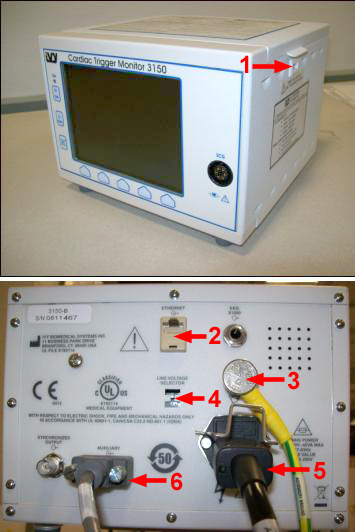 7. Connect AC (IEC) power cable to the back of the Cardiac Monitor.
