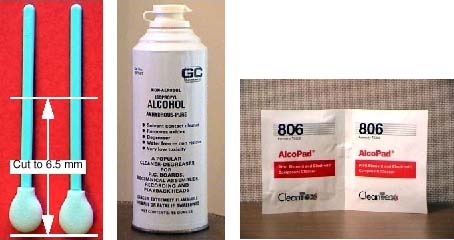 - Wet lint-free foam head with alcohol. Squeeze excess alcohol from head.