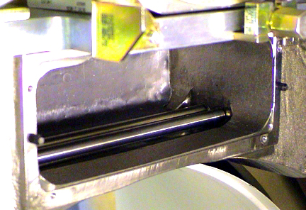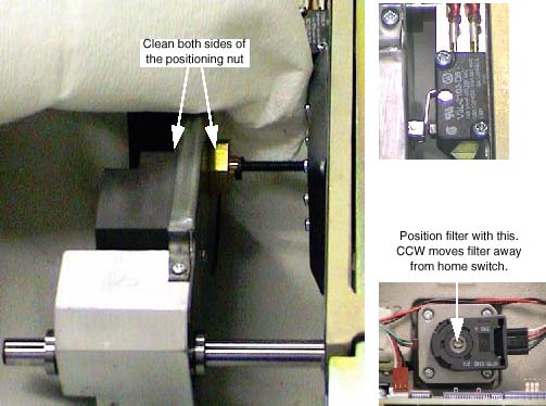 Remove the Mylar filter. Using a flashlight, inspect the lead-screw