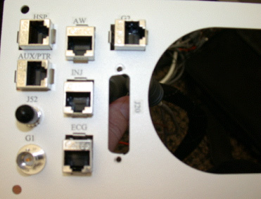 This module describes the procedures used to upgrade the Console Bulkhead. The new bulkhead has three additional RJ45 ports, to allow the direct connection of the ECG device, the Injector Device, and an Auxiliary Printer.