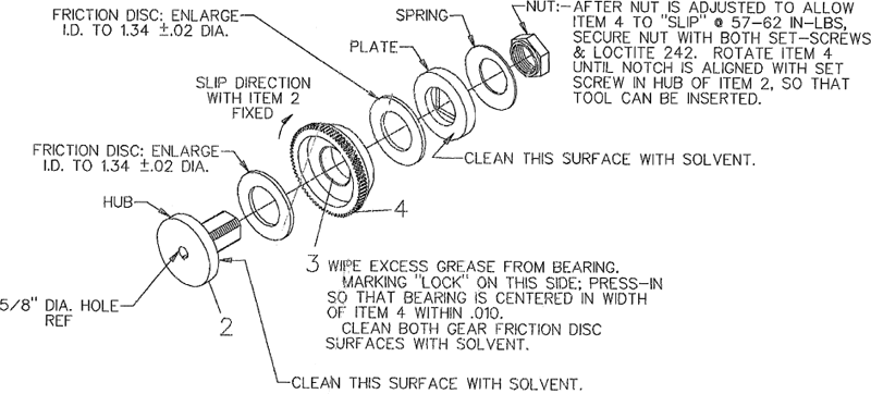 - Third Check: Re-install the GEAR onto the HUB shaft, and insure that the GEAR rotates freely in the direction specified on the assembly drawing. The GEAR should NOT rotate when rotated the opposite direction.