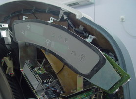 3. Disconnect the cabling at the right rear gantry cover. Only (1) cable will connect to the Gantry Display. Connect the cable taken from the rear cover to the display.