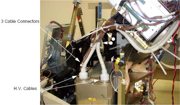Ground the ends of the H.V. cable to the Gantry frame, to endure no voltage exists at the end of the cable.