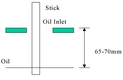 7. Check the level of the oil by using a stick such as tie-wrap, specification is shown in illustration below.
