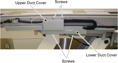 5. Remove two screws holding the upper duct cover, and remove the cable duct cover from the Table.