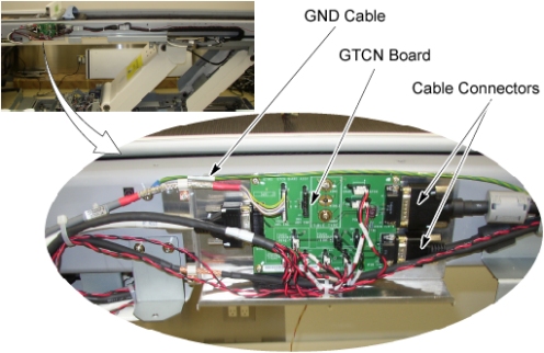 8. Disconnect two cable connectors and a GND wire from the GTCN board, and remove any clamps.