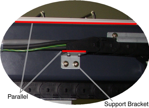 13. Verify that the top surface of the support bracket is parallel with the top surface of the Table frame.