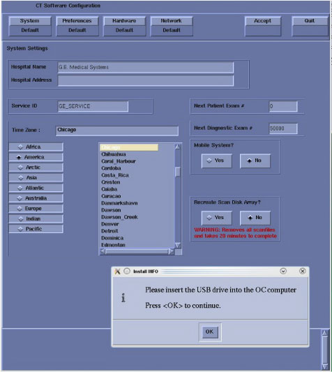 - Confirm that a current system state backup media is on site. If unsure of the status of the system state, execute System State Save Restore procedure found in the software chapter of this manual. Save a system state backup to either DVD-RAM or USB media.