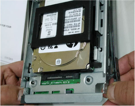 Figure 5. Factor Adapter Bracket with Hard Drive from the Hard Drive carrier rails