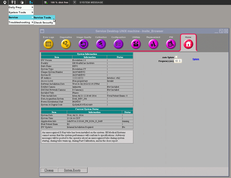 - Open the Service Desktop by selecting Service > Service Tools from the Desktop Toolbar.