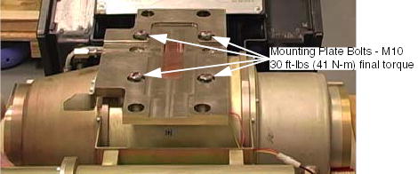- If the replacement tube does NOT have a mounting plate attached, remove the mounting plate by removing the four M10 (P/N 46-328416P20) hex head screws. Throw these bolts and washers away, as they should not be reused.