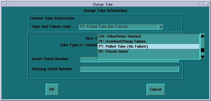 Tube Unit Failure Code (reason for tube replacement), Insert Serial