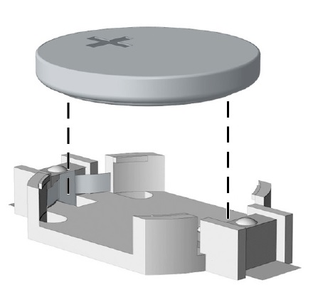 - Slide the replacement battery into position, positive side up. The battery holder automatically secures the battery in the proper position.