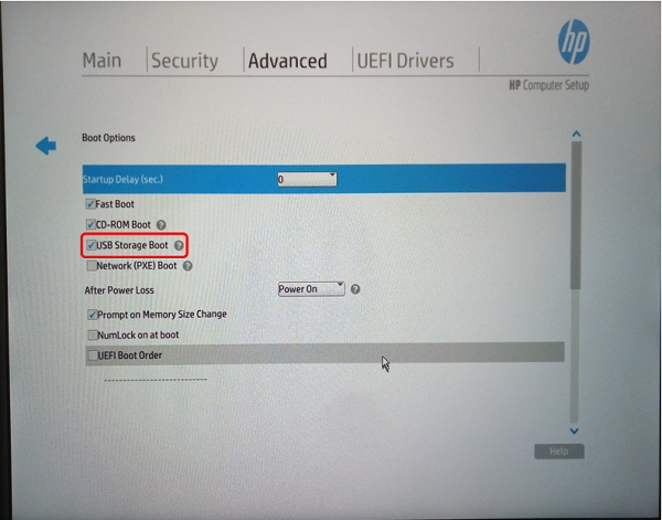 - Enter Computer Setup again, press F10 on keyboard when the HP Boot Screen appears.