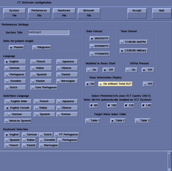 With Application Software up, record the User Prefs Screen and Film Large Font Annotation Groups selections. Refer to Initial load of this software - Retro Recon / Customize Large Font to understand the information that may need to be gathered.
