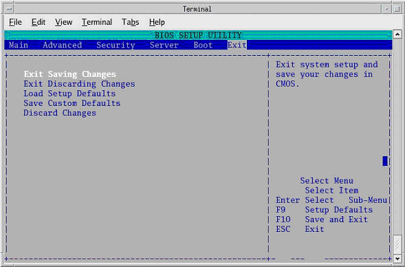 note:(For Westville) After saving the VDARC BIOS, the BIOS SETUP UTILITY window should disappear (within one minute) and the VDARC will begin to reboot. If the BIOS SETUP UTILITY window does not disappear within a minute, close the shell and continue with the load process on the VDARC. If necessary, reset the VDARC (if it is hung). If the VDARC OS load continues to fail and a pop-up screen states that the user should check VDARC Boot BIOS Order, perform the steps within this procedure again.